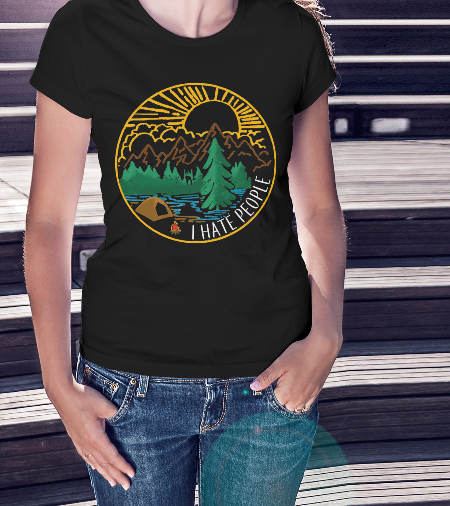 I Hate People Camping Mountains Forest Sunset Scene T-Shirt