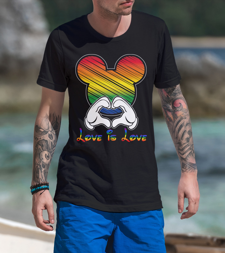 Love Is Love Rainbow Mickey Heart Hands T-Shirt