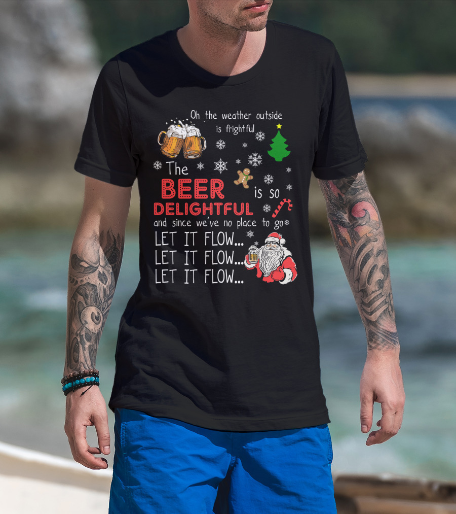 Oh The Weather Outside Is Frightful Beer Is So Delightful Let It Flow Santa Christmas T-Shirt
