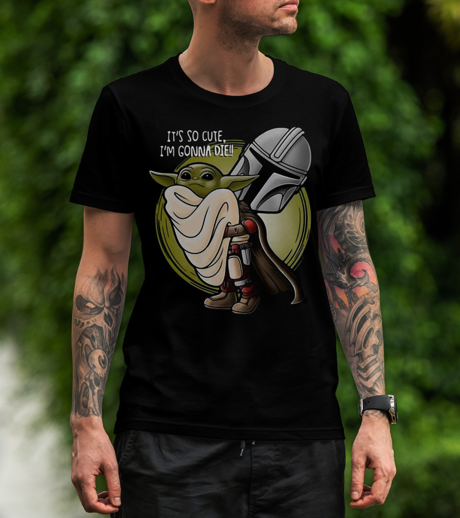 It's So Cute I'm Gonna Die Baby Yoda Hug With Mandalorian Helmet T-Shirt