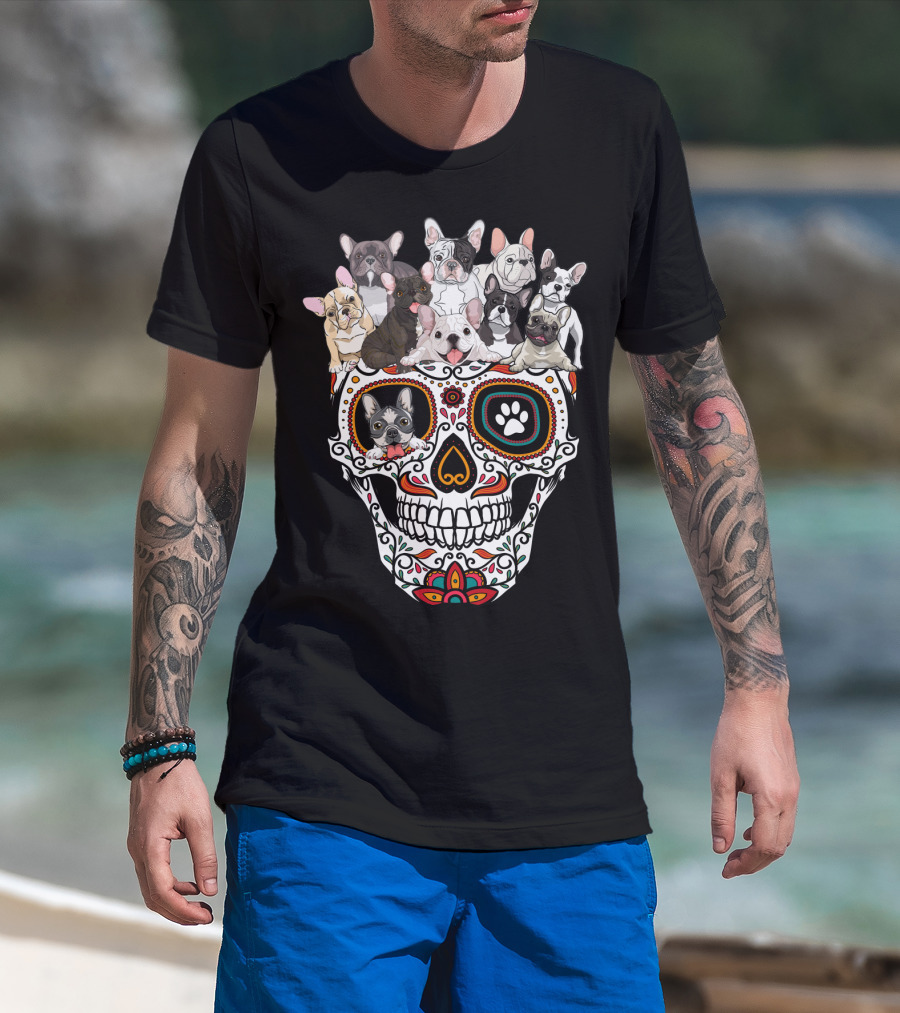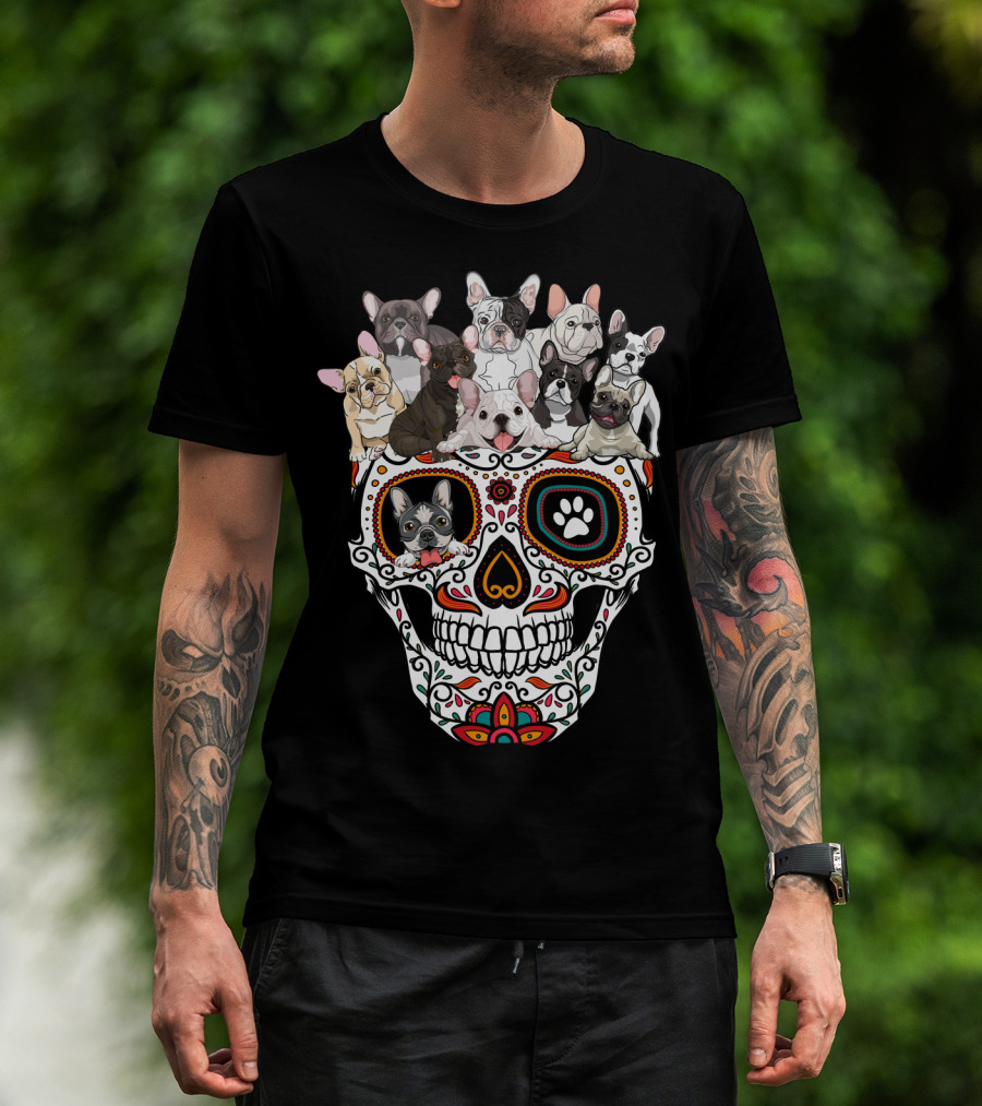 Skull Sugar French Bulldog Día De Los Muertos T-Shirt