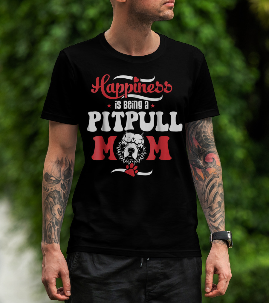 Happiness Is Being A Pitbull Mom Cute Pitbull Lover Dog Paw Prints T-Shirt