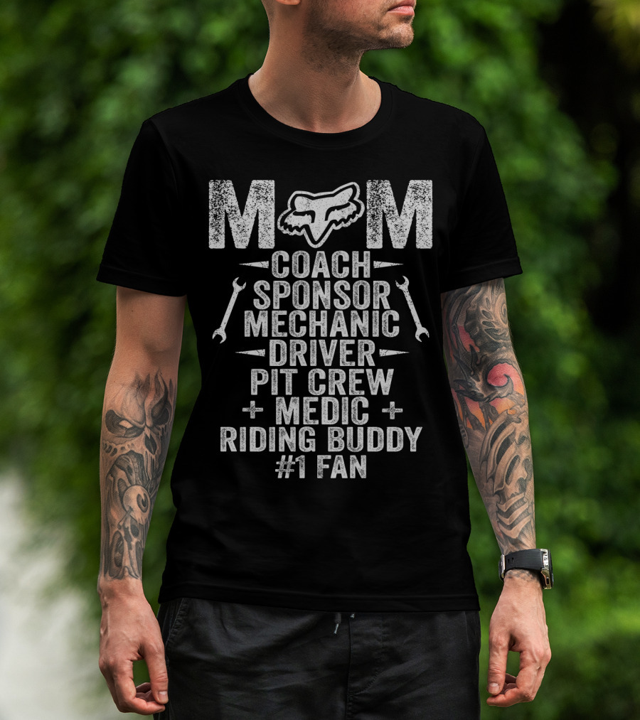 MOM Coach Sponsor Mechanic Driver Pit Crew Medic Riding Buddy #1 Fan Fox Racing T-Shirt
