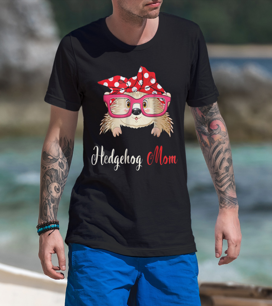 Hedgehog Mom Awesome Present54 Cute Glasses Polka Dot Bow T-Shirt
