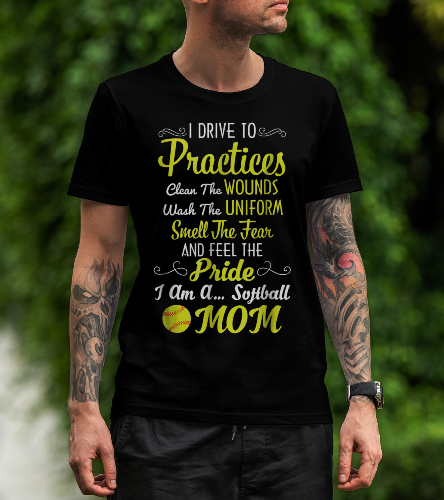 I Drive To Practices Clean The Wounds Wash The Uniform Smell The Fear And Feel The Pride I Am A Softball Mom T-Shirt