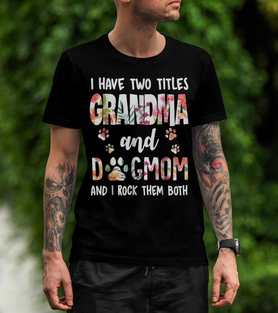 I Have Two Titles Grandma And Dog Mom Floral Paw Prints I Rock Them Both T-Shirt