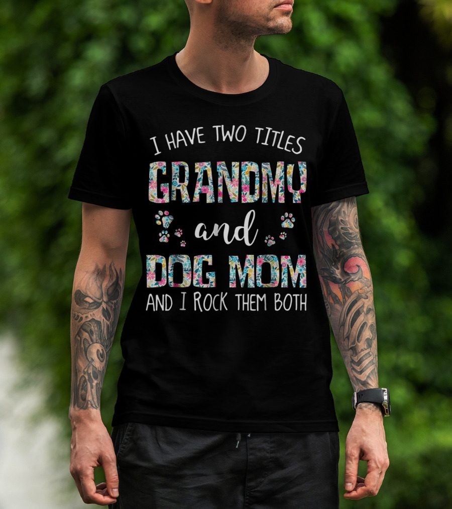The I Have Two Titles Grandmy and Dog Mom and I Rock Them Both T-shirt is designed for everyday wear and a consistent fit. Fabric is pre-shrunk ring-spun cotton with durable stitching. See the size chart below for exact measurements.