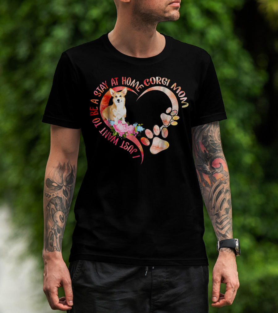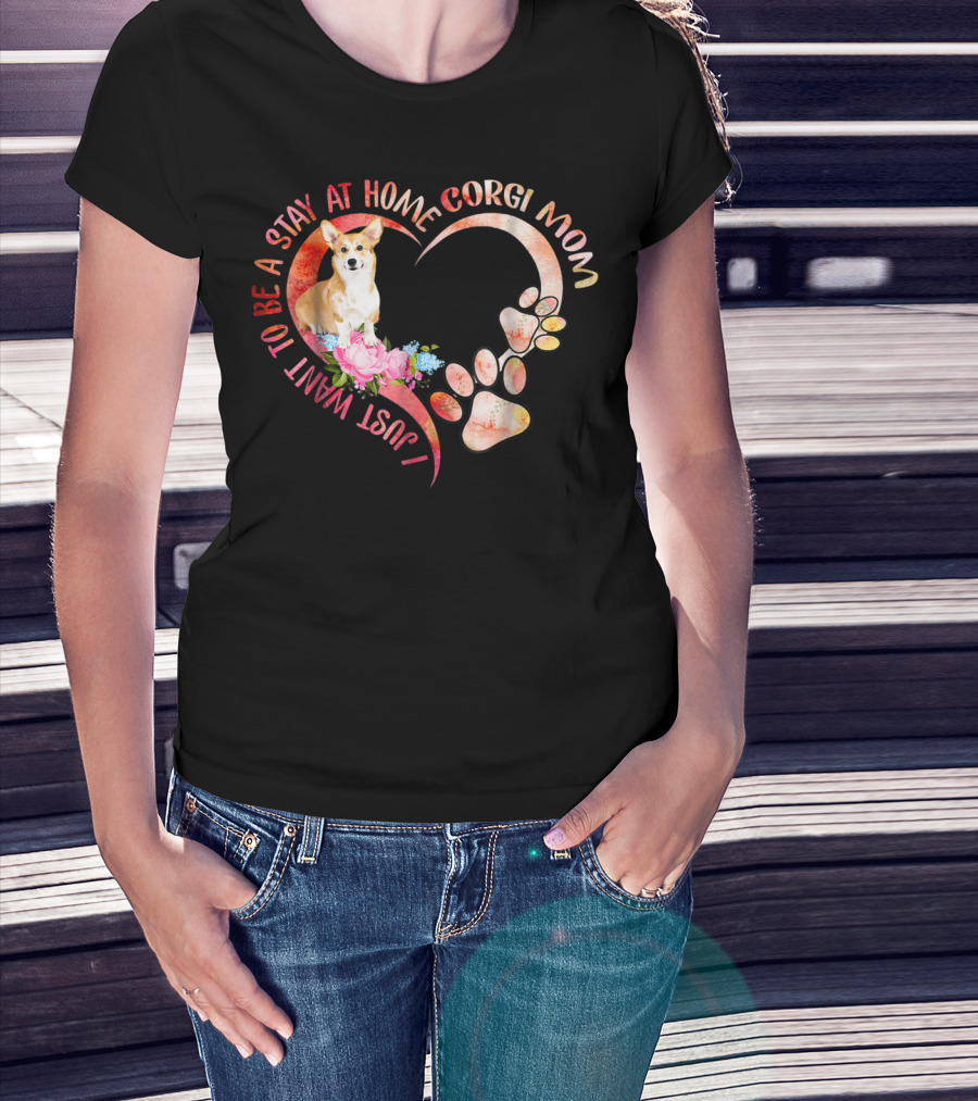 I Just Want To Be A Stay At Home Corgi Mom With Heart And Paw Prints T-Shirt