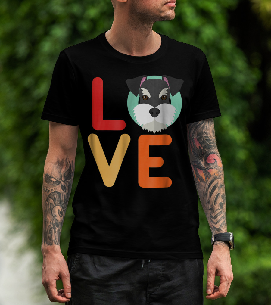 The Love Miniature Schnauzer Dog and Puppy for Dog T-shirt is designed for everyday wear and a consistent fit. Fabric is pre-shrunk ring-spun cotton with durable stitching. See the size chart below for exact measurements.