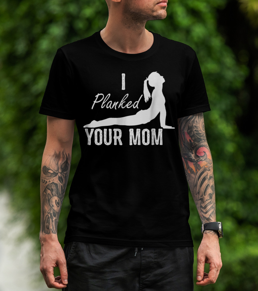 The I Planked Your Mom Yoga Pose T-shirt is designed for everyday wear and a consistent fit. Fabric is pre-shrunk ring-spun cotton with durable stitching. See the size chart below for exact measurements.
