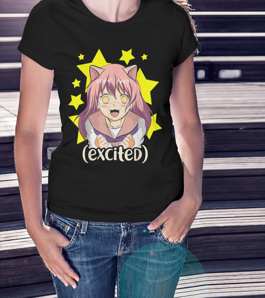 Anime Japanese Cat Girl Excited Star Eyes Manga T-Shirt