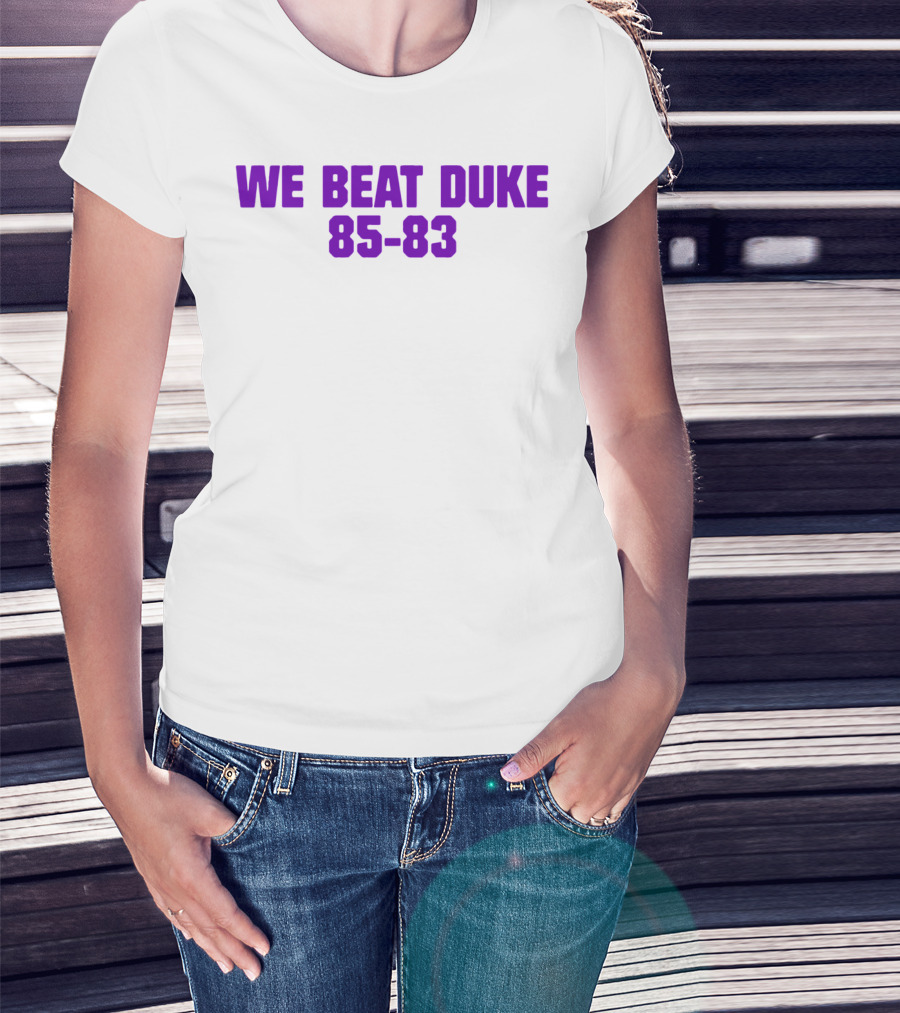 The We Beat Duke 85-83 T-shirt is designed for everyday wear and a consistent fit. Fabric is pre-shrunk ring-spun cotton with durable stitching. See the size chart below for exact measurements.