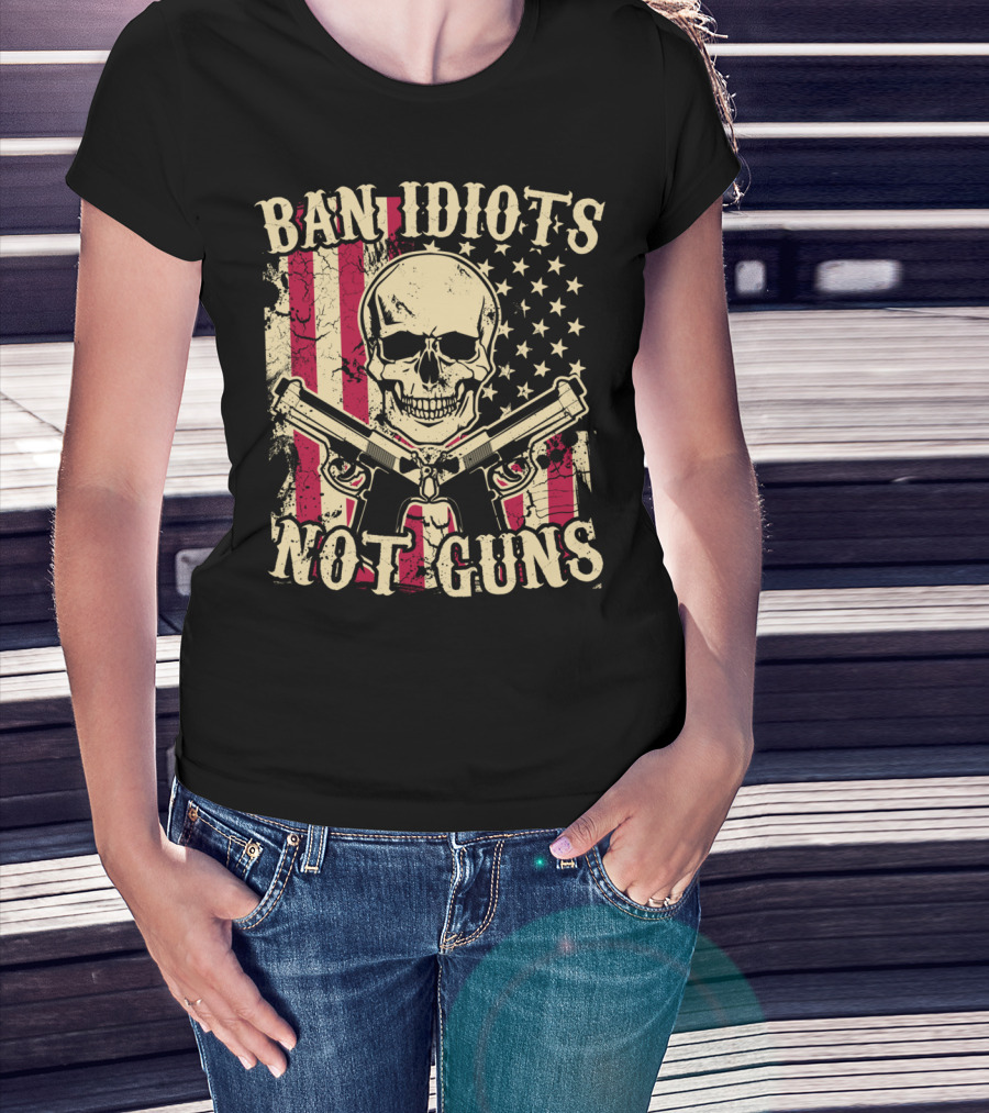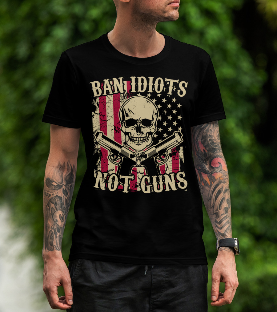 Ban Idiots Not Guns Skull With American Flag Pistols 2nd Amendment T-Shirt