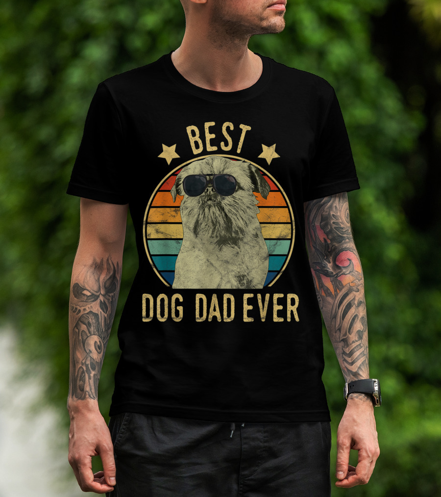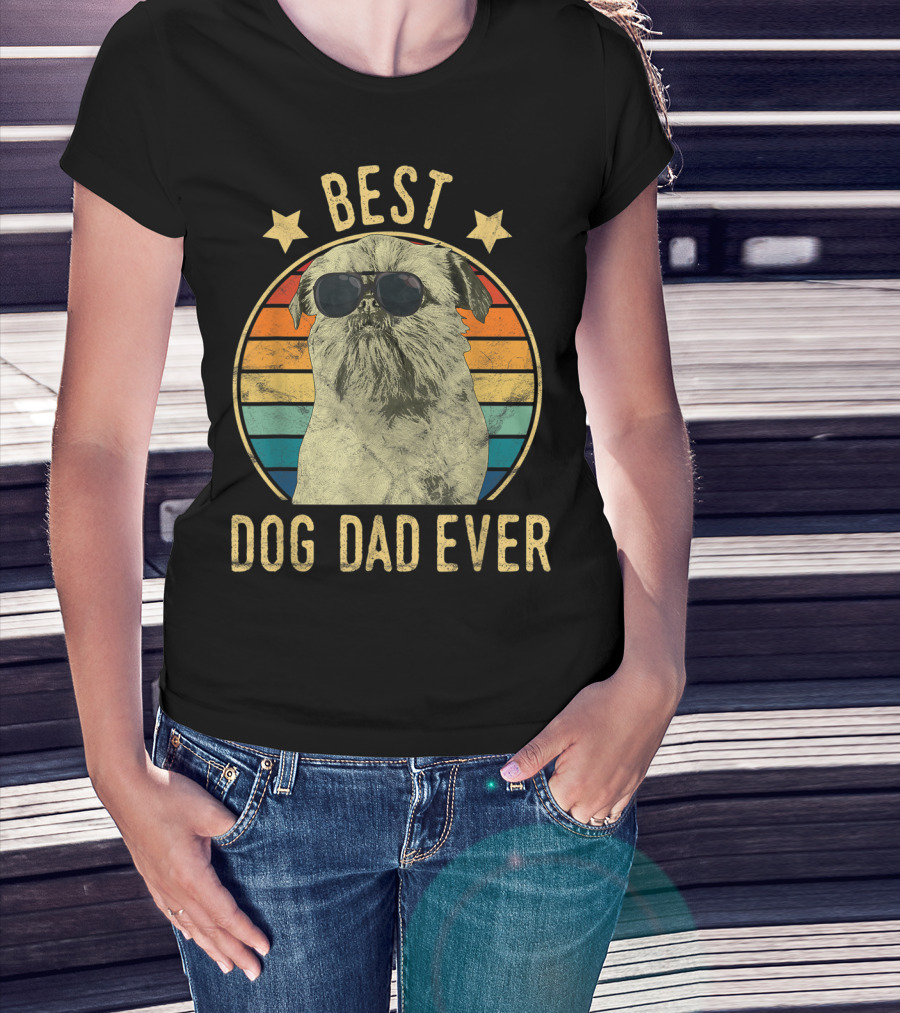 Best Dog Dad Ever Brussels Griffon Father's Retro Dog Sunglasses T-Shirt