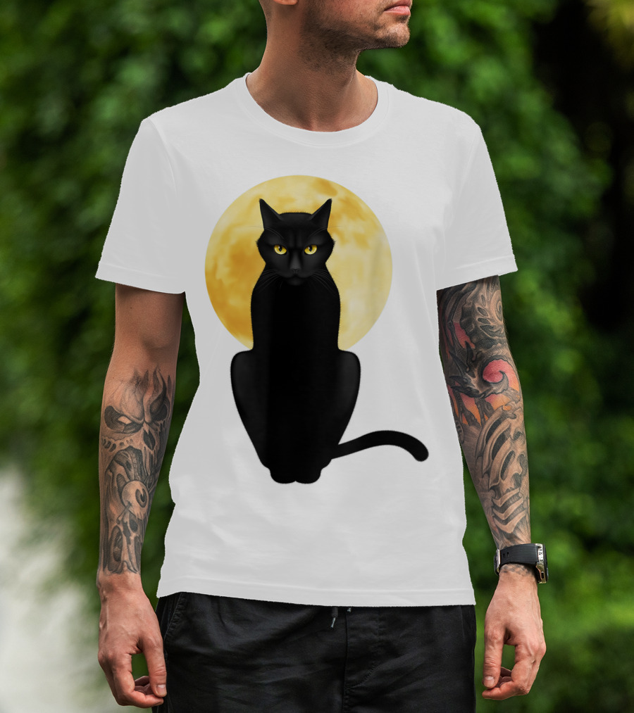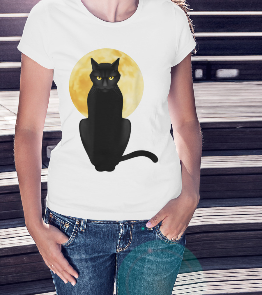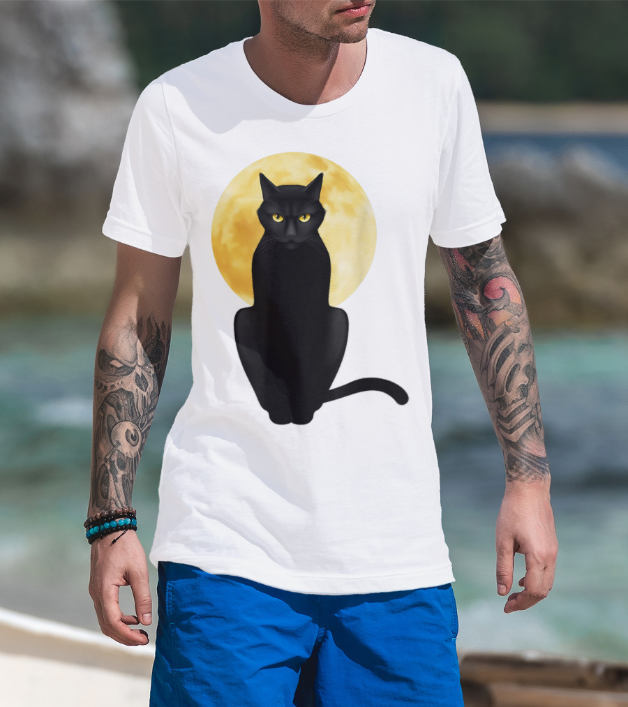 Black Cat Yellow Eyes Full Moon T-Shirt