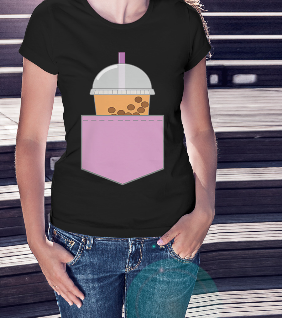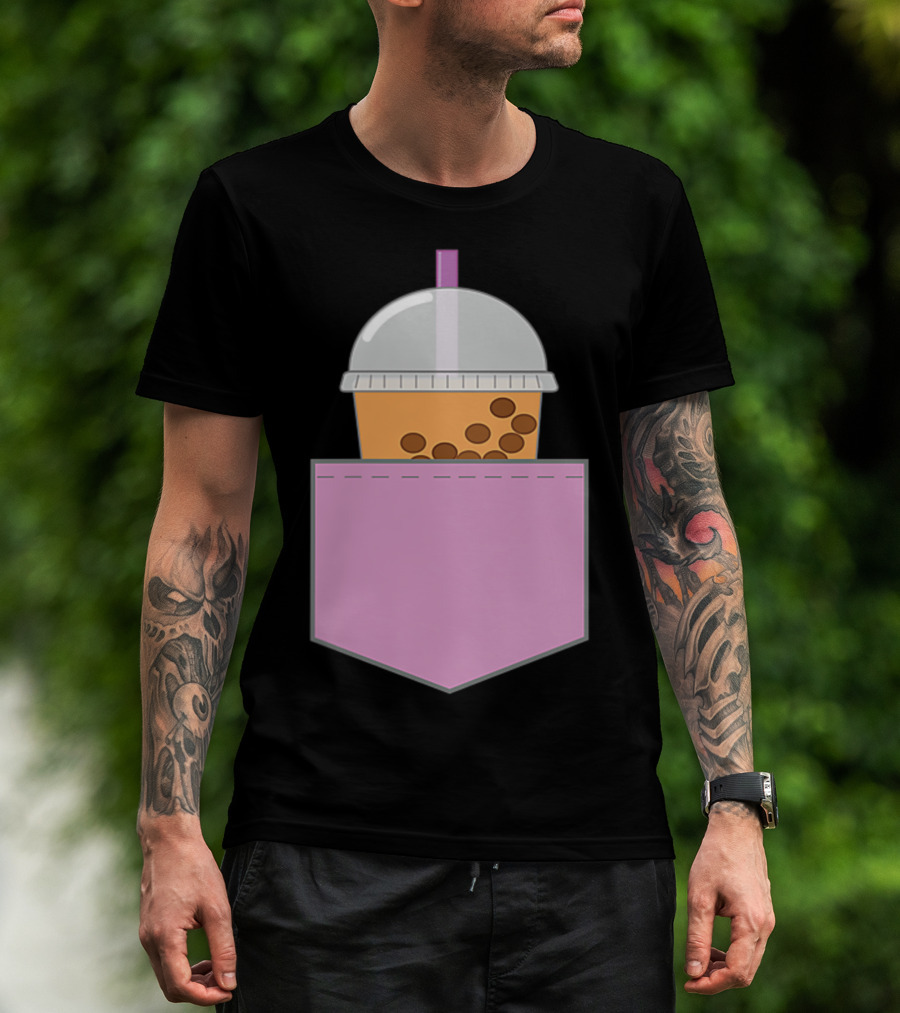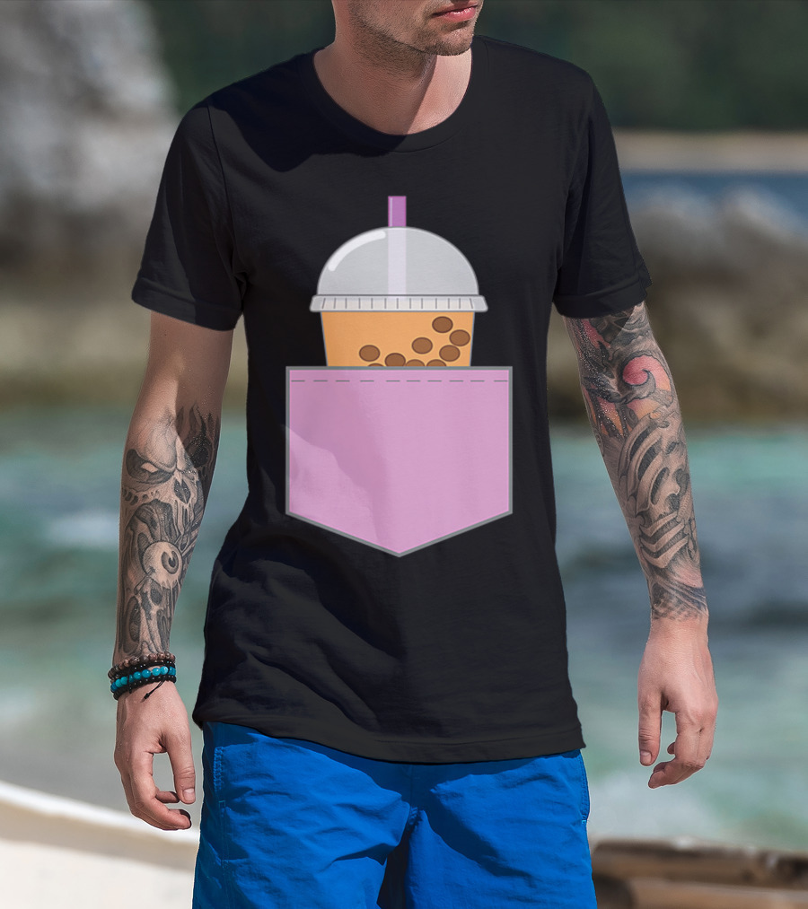 Bubble Tea Boba Cup In Pink Pocket T-Shirt
