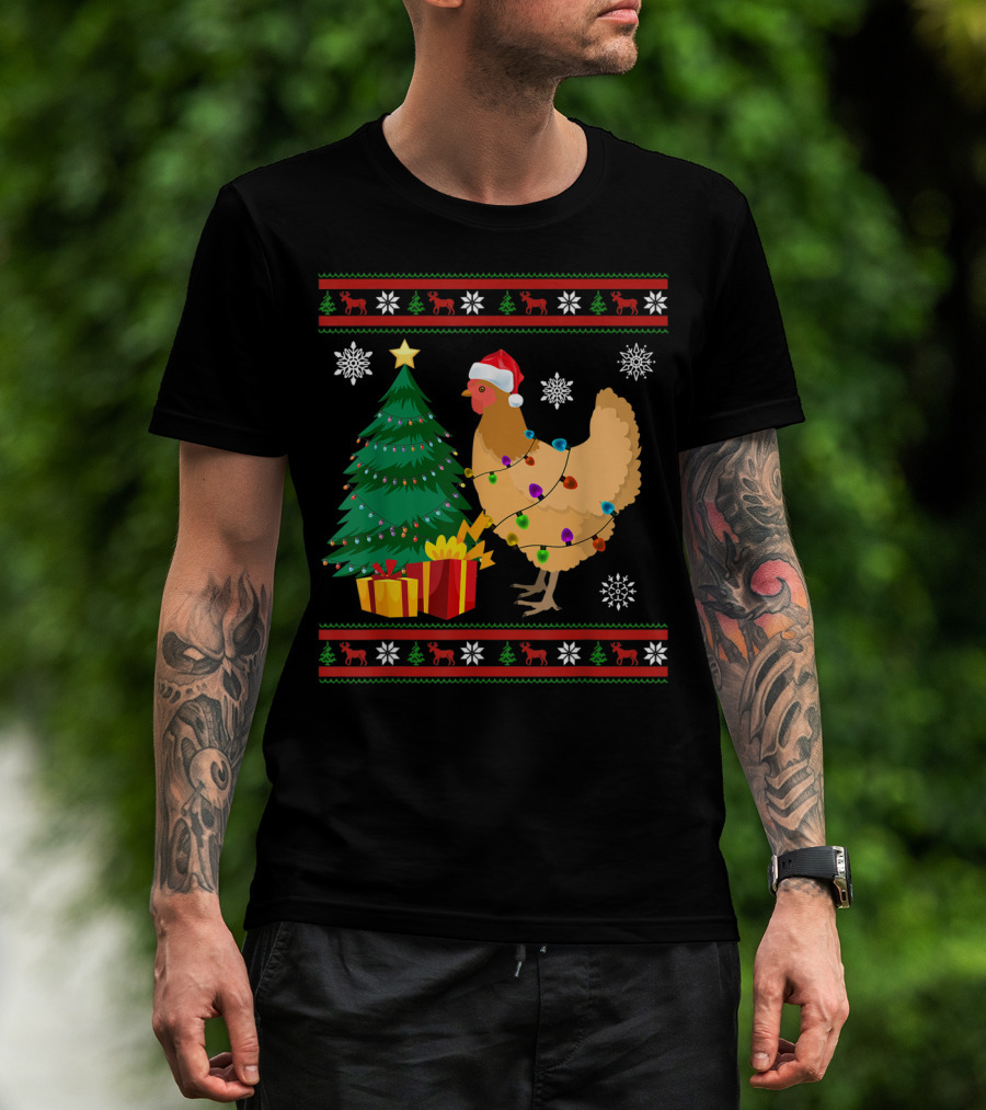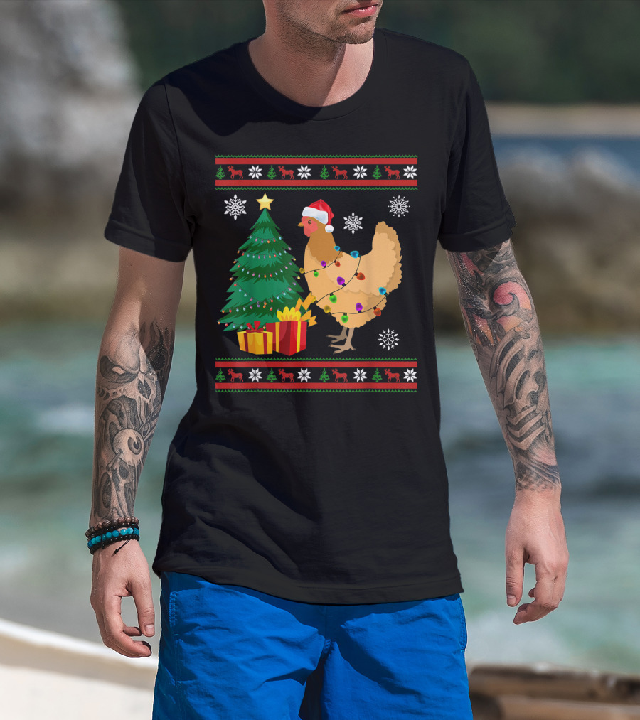 Chicken Christmas Decorations Santa Tree Snowflakes Reindeer T-Shirt