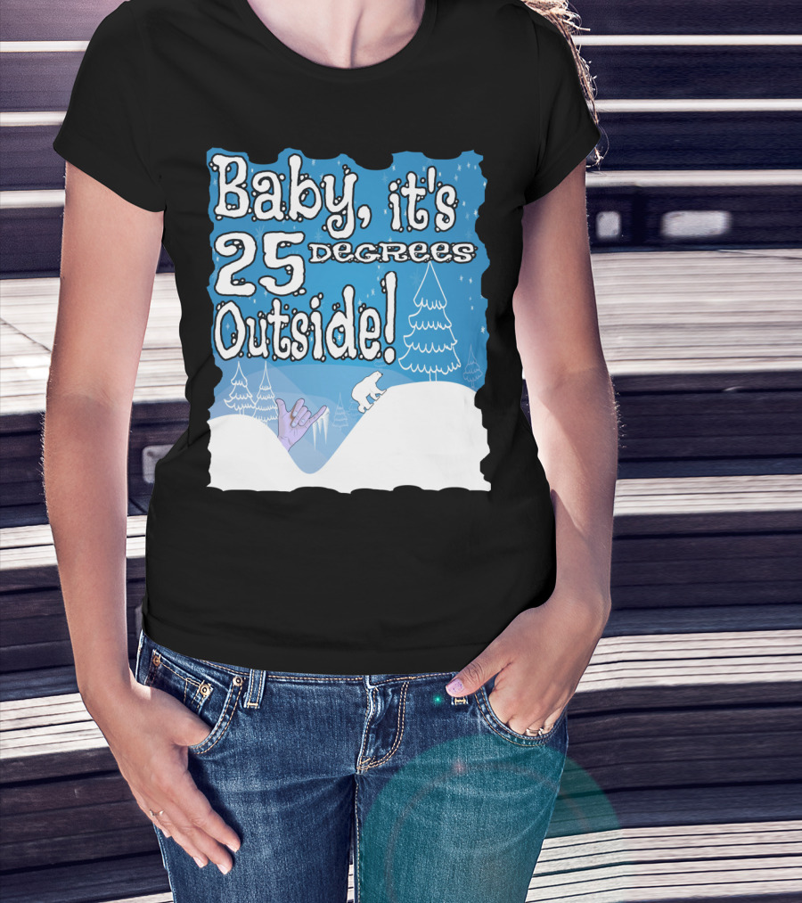 Baby, It's 25 Degrees Outside Polar Bear Christmas Holiday T-Shirt