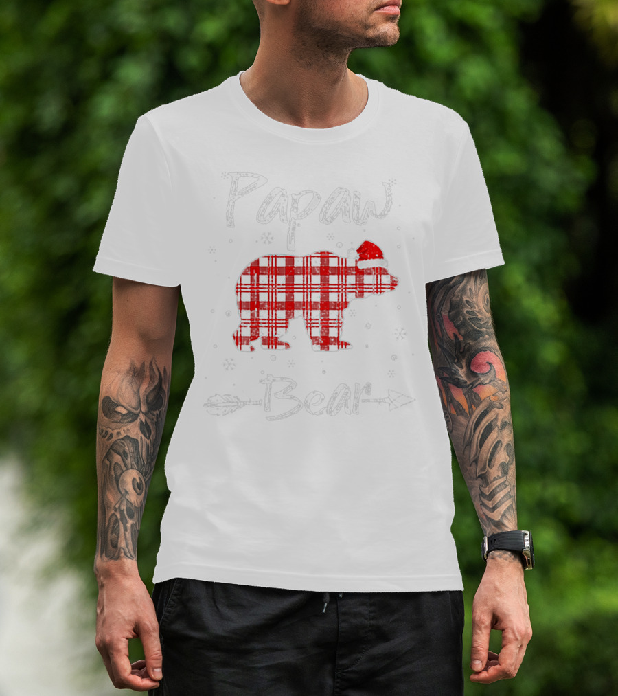 Papaw Bear Red Plaid Santa Hat Winter Holiday Plaid Bear T-Shirt