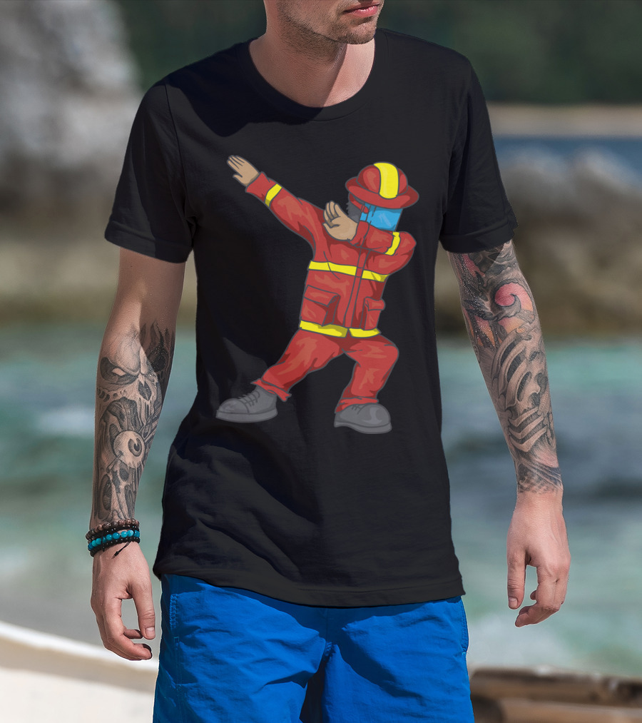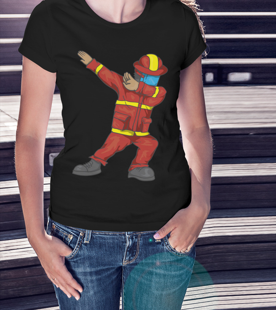 Dabbing Firefighter Cute Dancing Firefighter Red T-Shirt