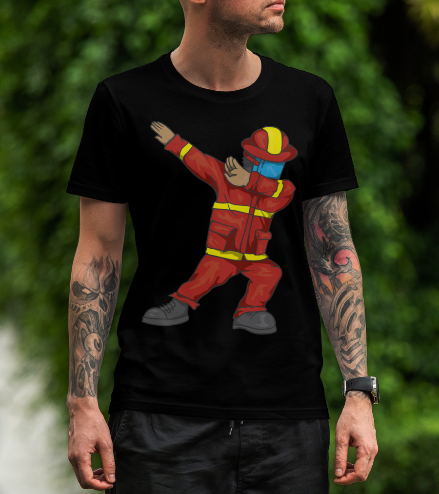 The Dabbing Firefighter Cute Dancing Firefighter Red T-shirt is designed for everyday wear and a consistent fit. Fabric is pre-shrunk ring-spun cotton with durable stitching. See the size chart below for exact measurements.