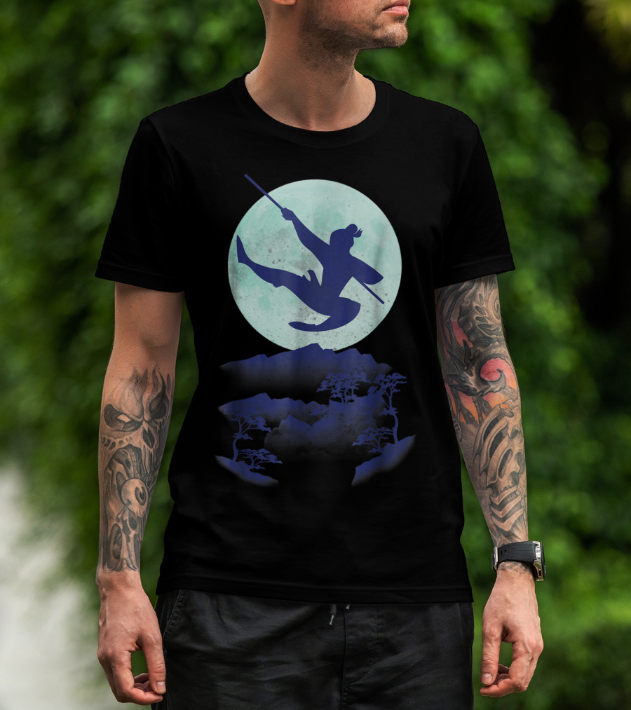 Disney Mulan Warrior Jump Against Full Moon Night Sky T-Shirt