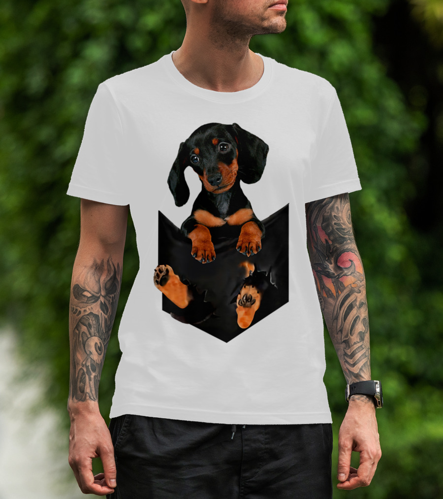 Doxie Dachshund Puppy Dog In Pocket T-Shirt