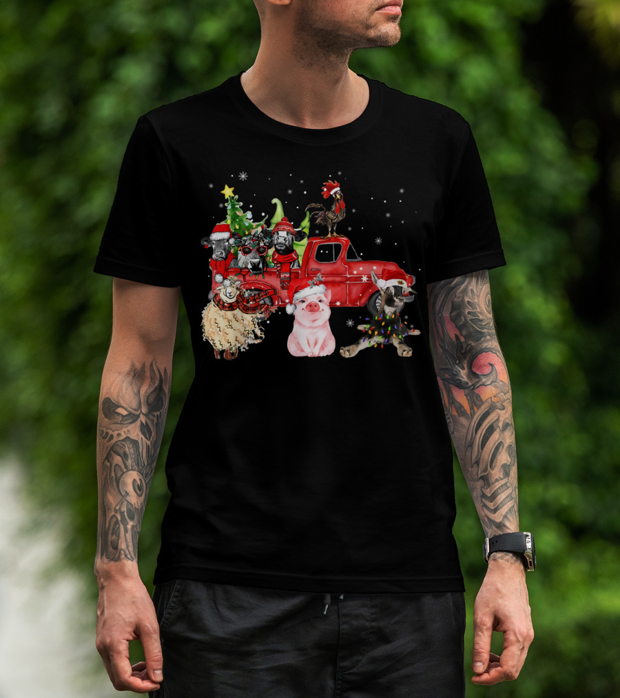 Funny Farmer Christmas Santa Cow Pig Sheep Chicken Truck T-Shirt