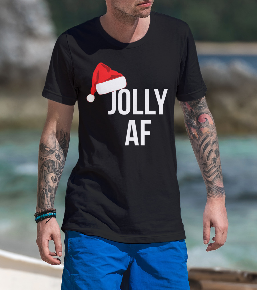 Jolly AF Funny Christmas Holiday Santa Hat T-Shirt