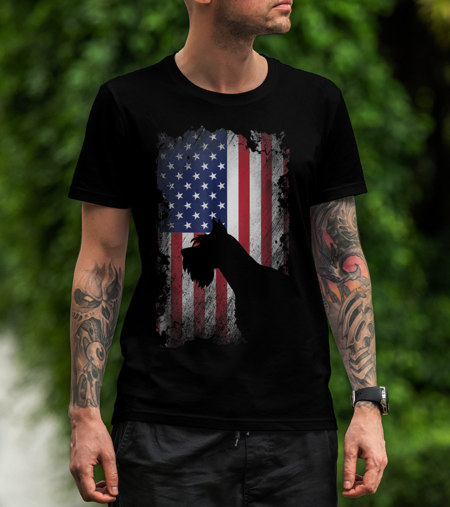 Giant Schnauzer Silhouette With American Flag USA Patriotic T-Shirt