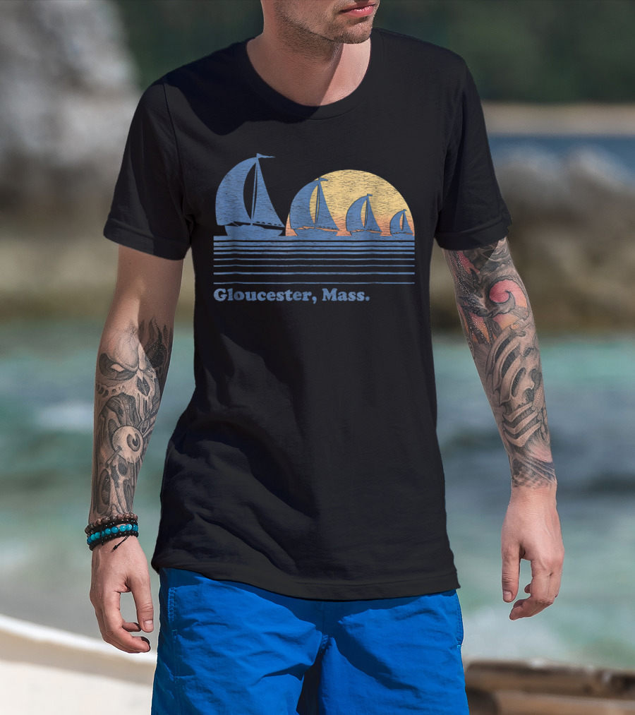 Gloucester Mass Vintage Sailboats And Sunset Scene T-Shirt