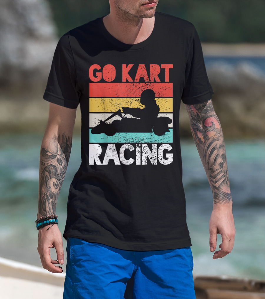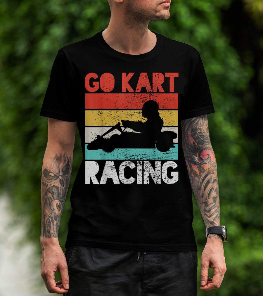 The GO KART RACING Retro Stripes T-shirt is designed for everyday wear and a consistent fit. Fabric is pre-shrunk ring-spun cotton with durable stitching. See the size chart below for exact measurements.