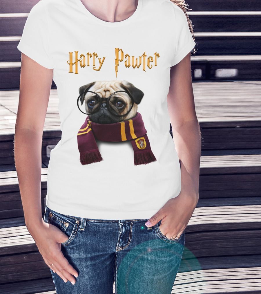 Harry Pawter Cute Puggy Dogs Potte Pups Wizard Pug With Glasses And Scarf T-Shirt