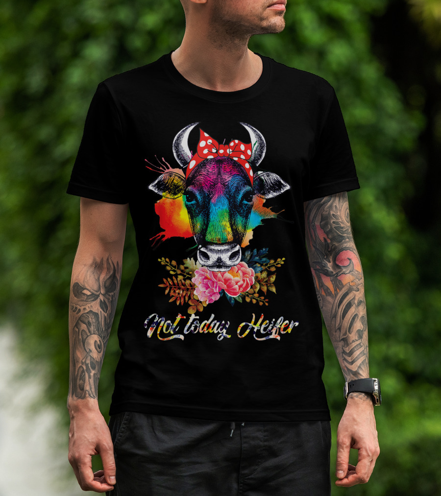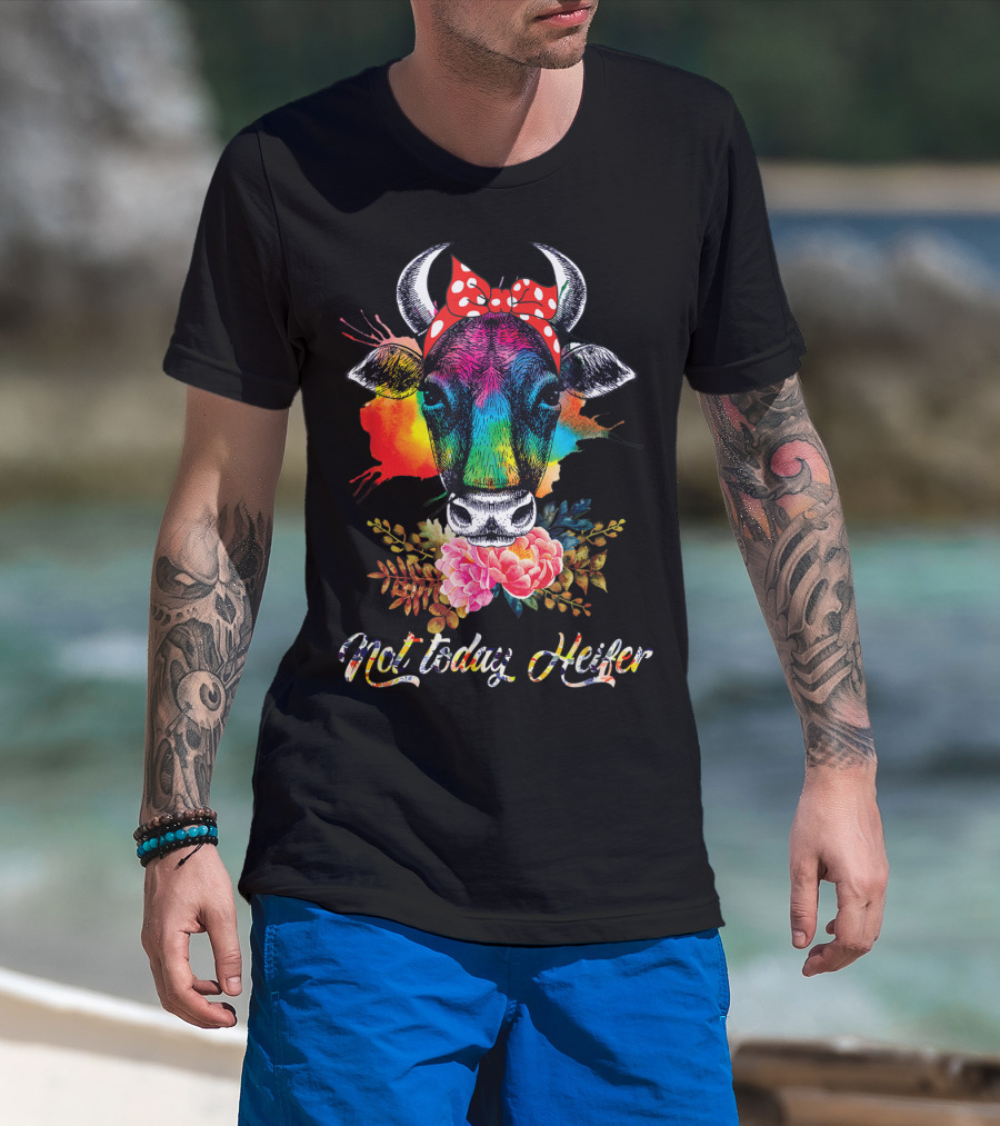 Not Today Heifer Rainbow Cow With Floral Bow T-Shirt
