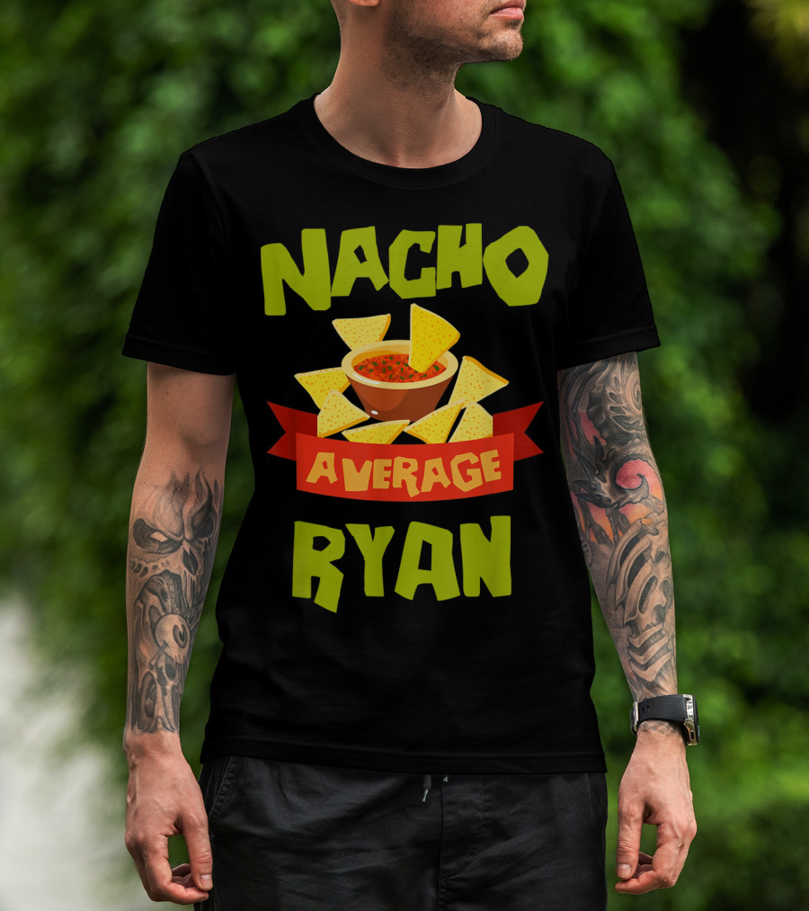 The Nacho Average Ryan Salsa Chips T-shirt is designed for everyday wear and a consistent fit. Fabric is pre-shrunk ring-spun cotton with durable stitching. See the size chart below for exact measurements.