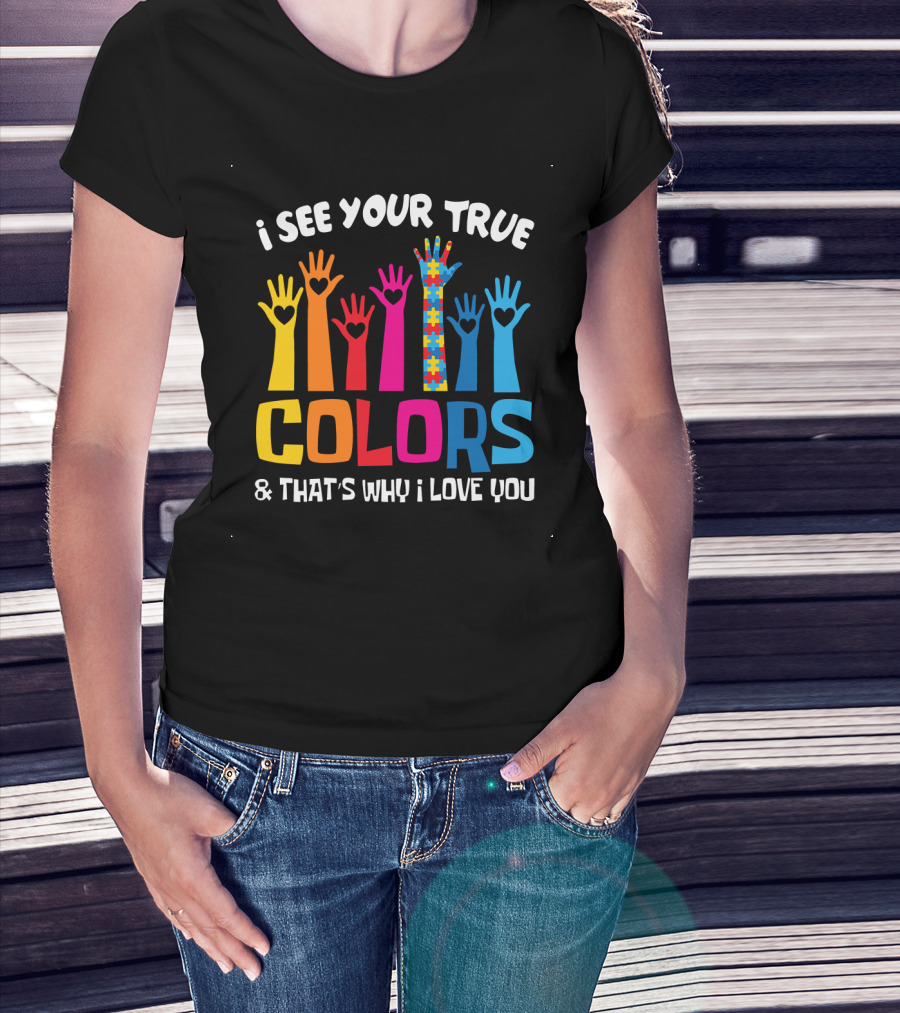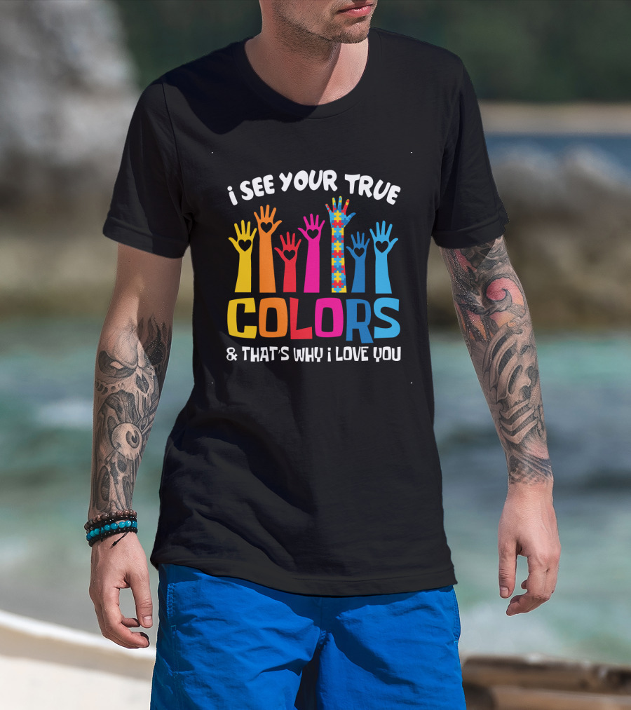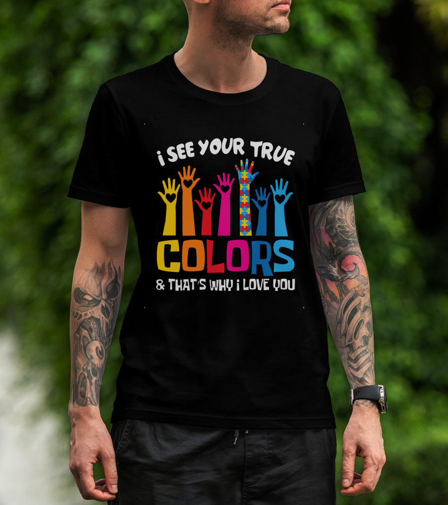 The I See Your True Colors and That's Why I Love You T-shirt is designed for everyday wear and a consistent fit. Fabric is pre-shrunk ring-spun cotton with durable stitching. See the size chart below for exact measurements.