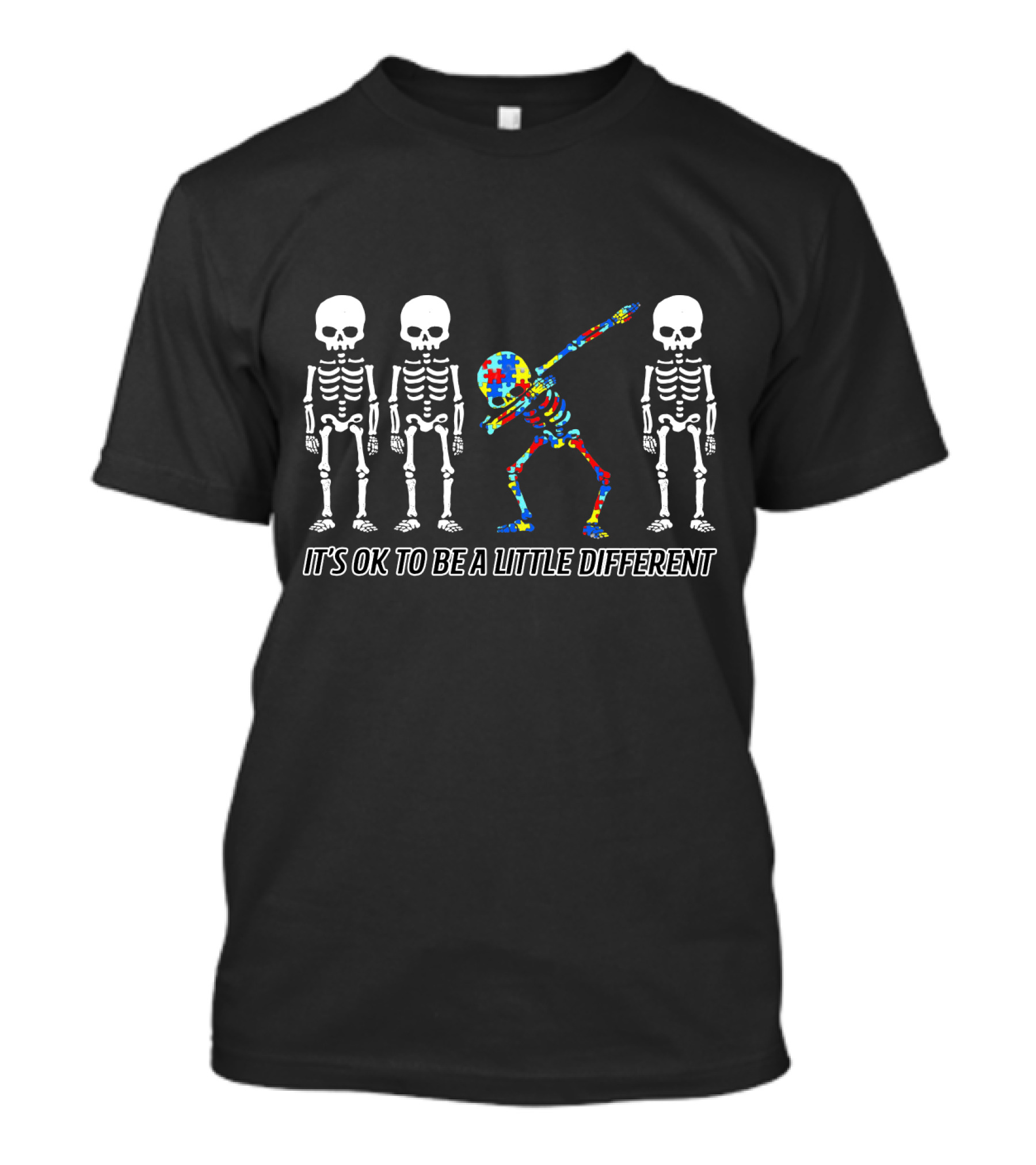 The It's Ok to Be a Little Different Skeleton Dab Puzzle T-shirt is designed for everyday wear and a consistent fit. Fabric is pre-shrunk ring-spun cotton with durable stitching. See the size chart below for exact measurements.