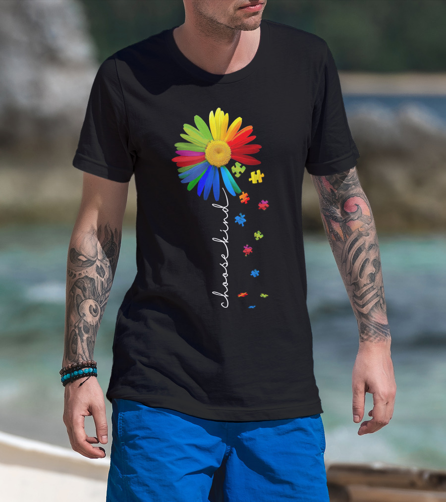 Choose Kind Rainbow Flower With Puzzle Pieces T-Shirt