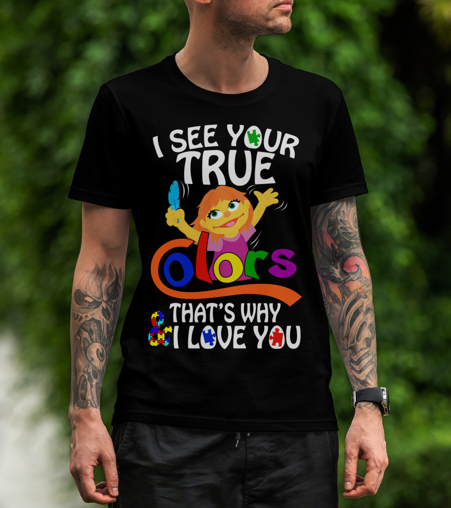 The I See Your True Colors That's Why I Love You T-shirt is designed for everyday wear and a consistent fit. Fabric is pre-shrunk ring-spun cotton with durable stitching. See the size chart below for exact measurements.