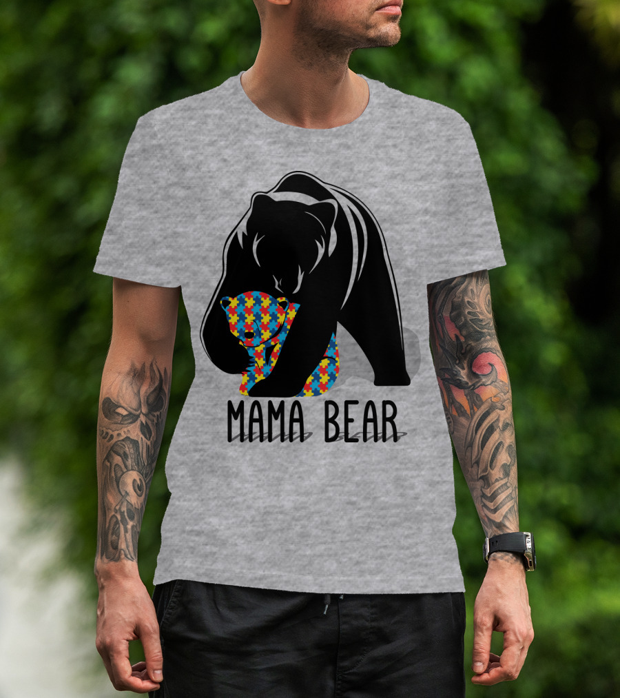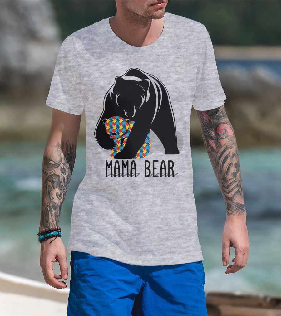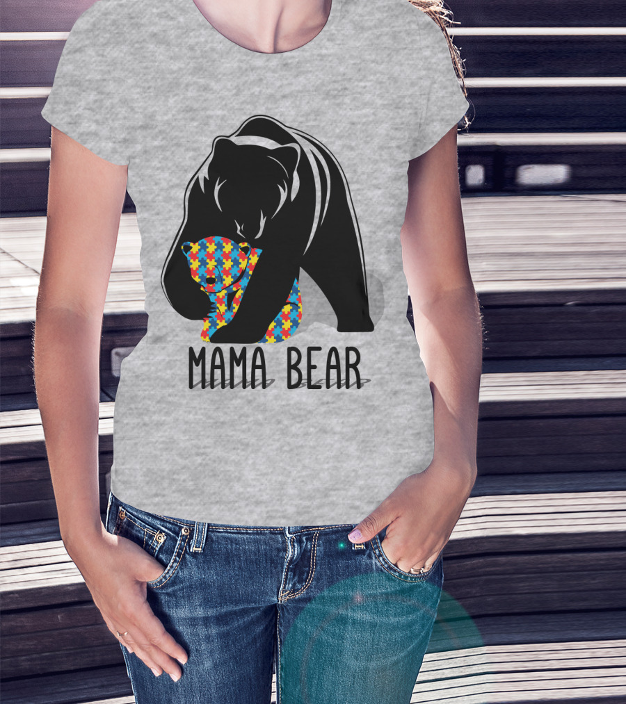 Mama Bear Autism Puzzle Bear Hug T-Shirt