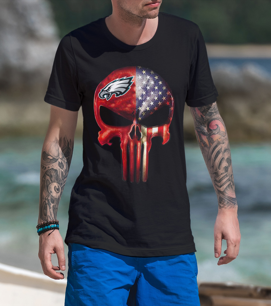 For True PHILADELPHIA Fan Only Eagles Patriotic Skull T-Shirt