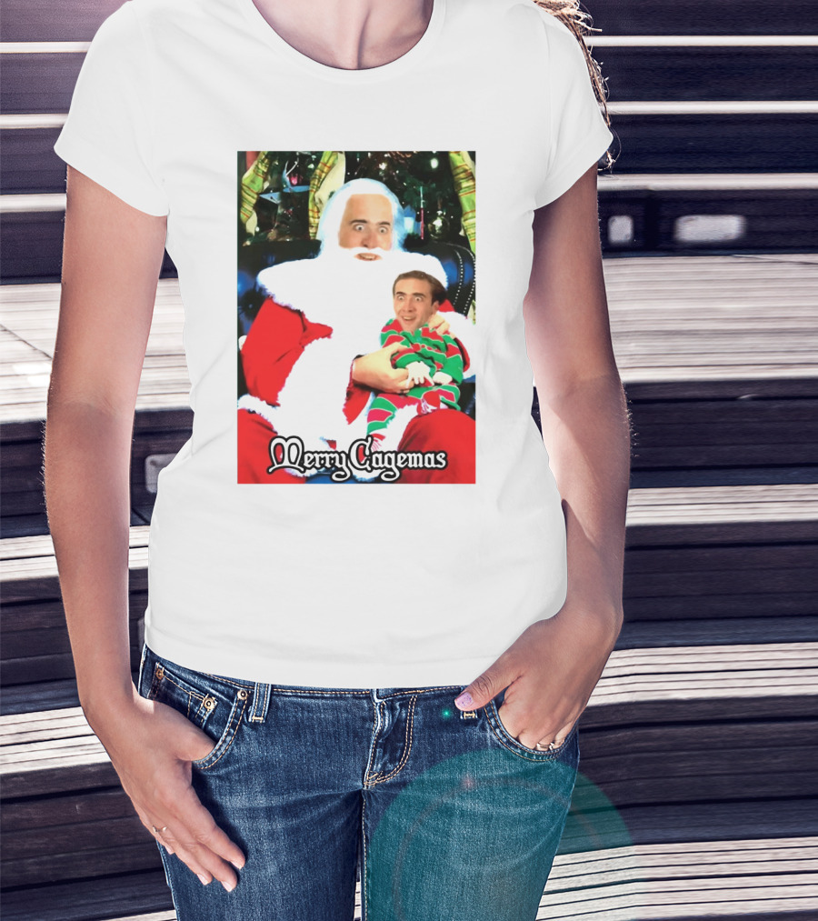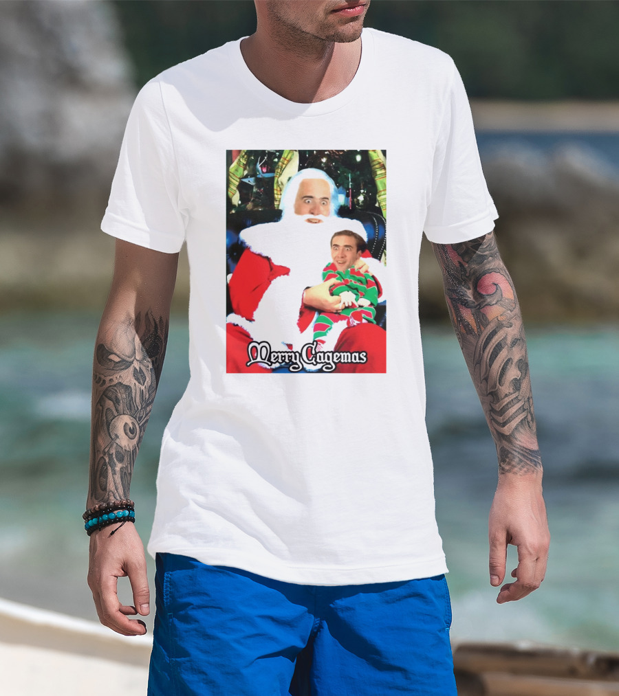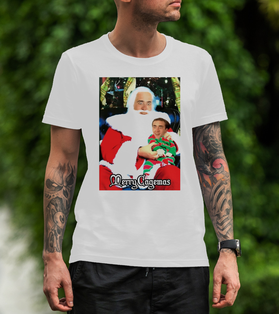 Santa Claus Nicolas Cage Merry Cagemas Christmas Scene T-Shirt