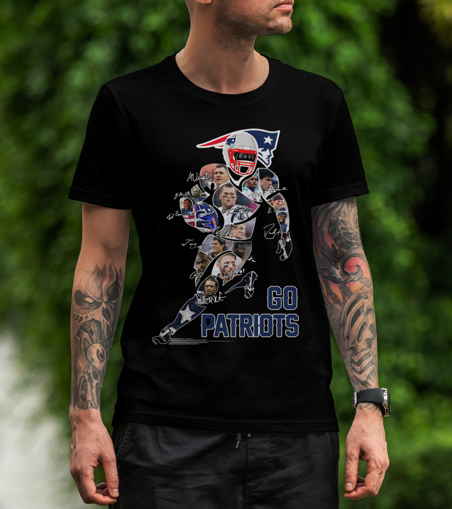 GO PATRIOTS New England Football Player Collage And Signatures T-Shirt