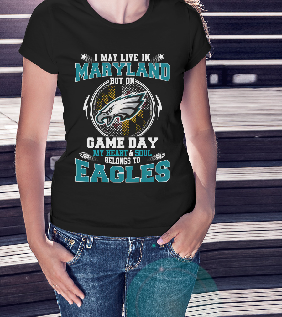 I May Live In Maryland But On Game Day My Heart And Soul Belongs To Eagles T-Shirt