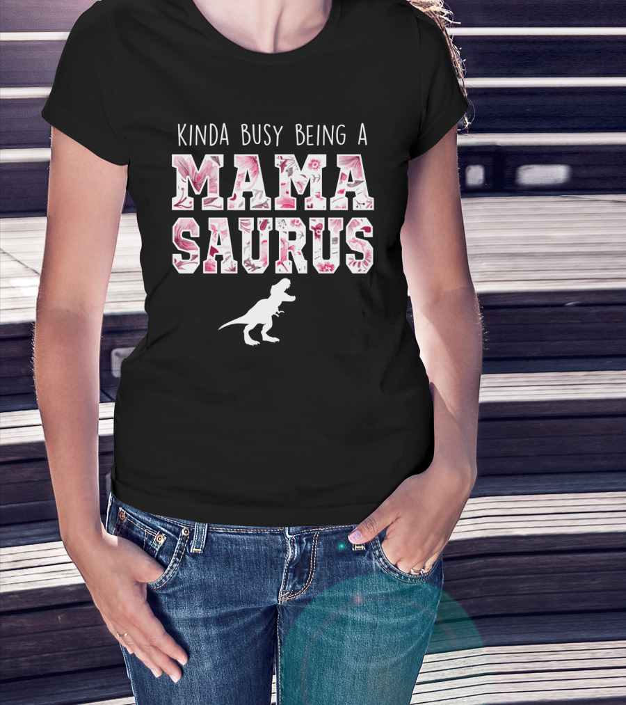 Kinda Busy Being A Mama Saurus Dinosaur Floral T-Shirt