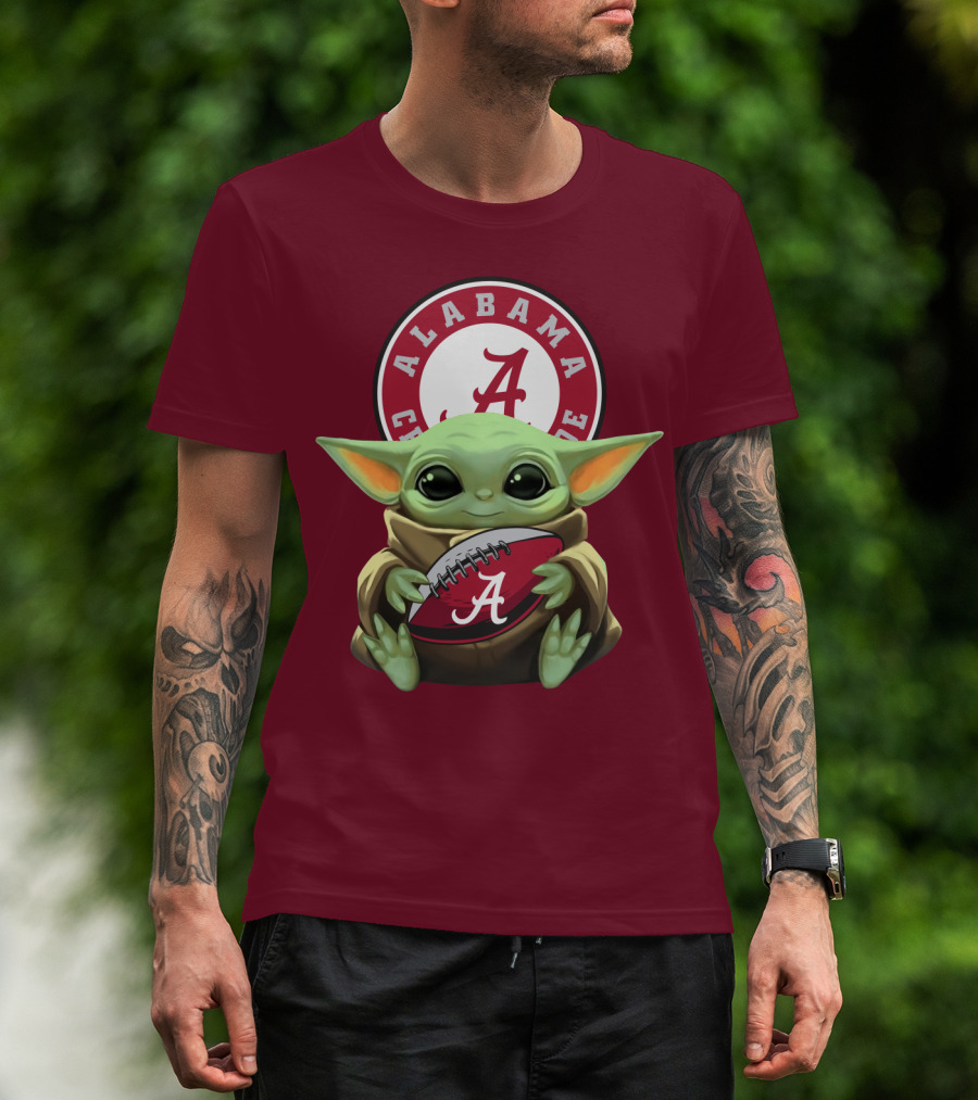 The Baby Yoda Alabama Crimson Tide Football Fan T-shirt is designed for everyday wear and a consistent fit. Fabric is pre-shrunk ring-spun cotton with durable stitching. See the size chart below for exact measurements.