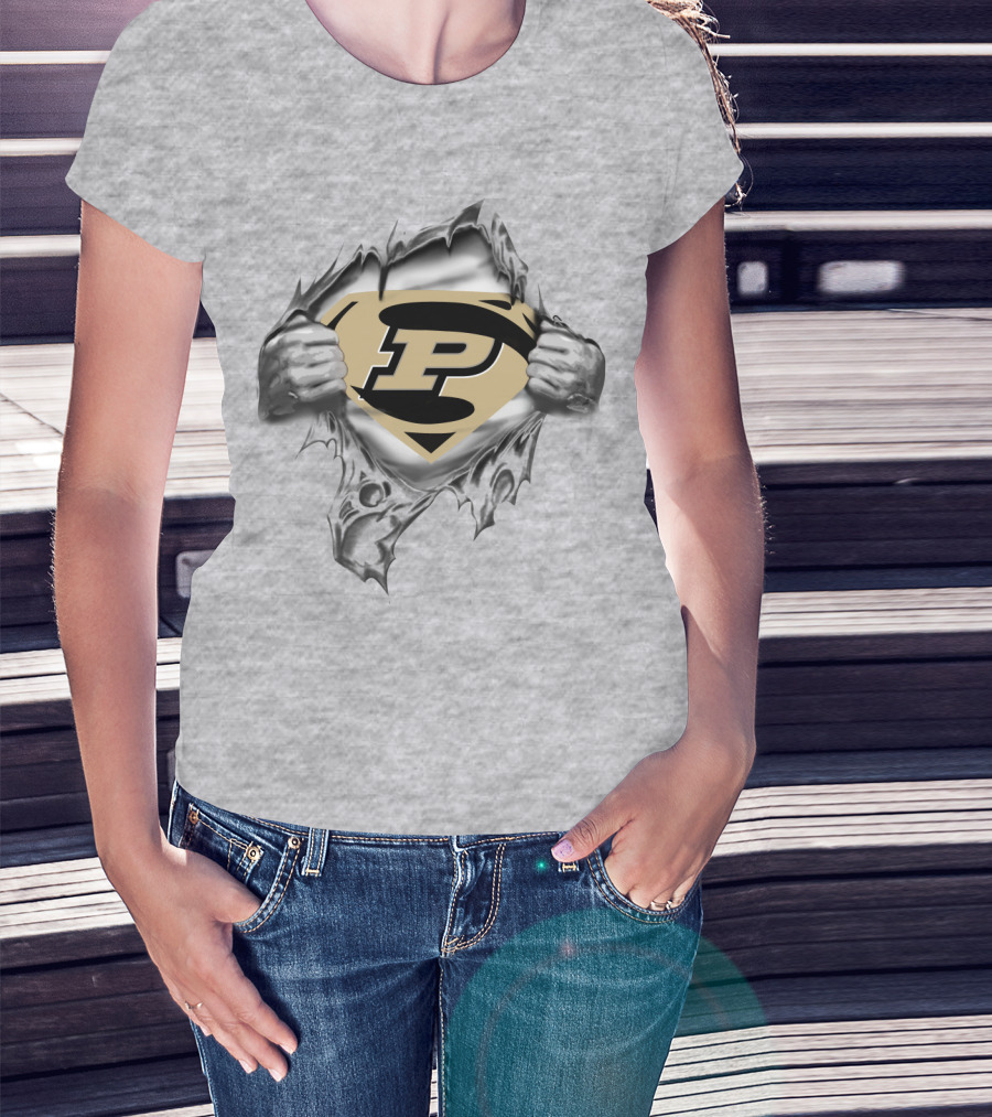 The Purdue University Super P Superman Shield T-shirt is designed for everyday wear and a consistent fit. Fabric is pre-shrunk ring-spun cotton with durable stitching. See the size chart below for exact measurements.
