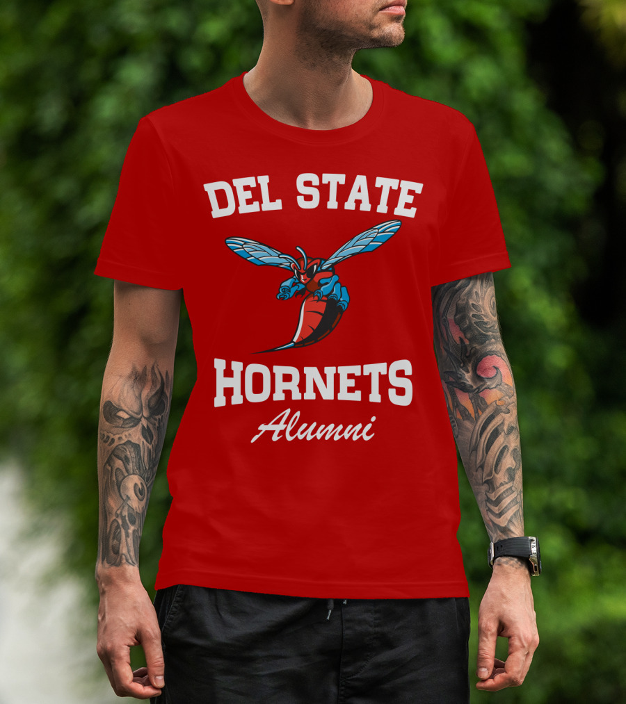 The DEL STATE HORNETS ALUMNI T-shirt is designed for everyday wear and a consistent fit. Fabric is pre-shrunk ring-spun cotton with durable stitching. See the size chart below for exact measurements.