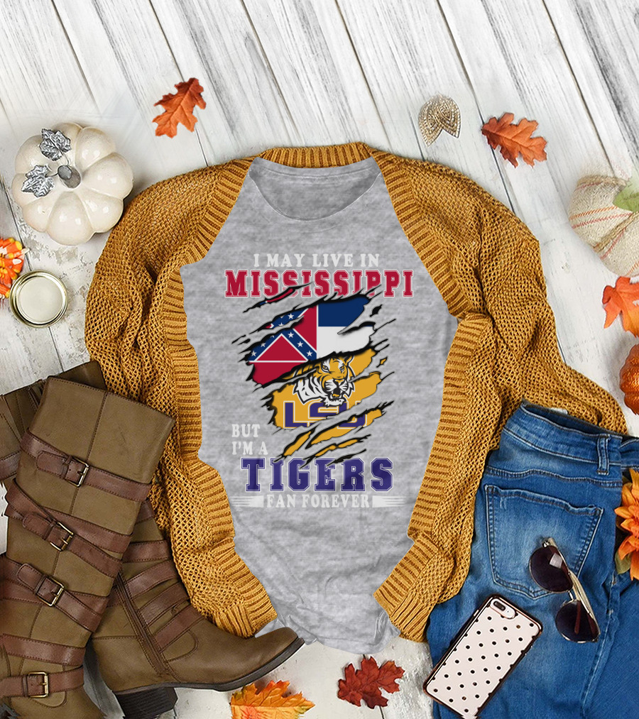 I May Live In Mississippi But I'm A Lsu Tigers Fan Forever T-Shirt