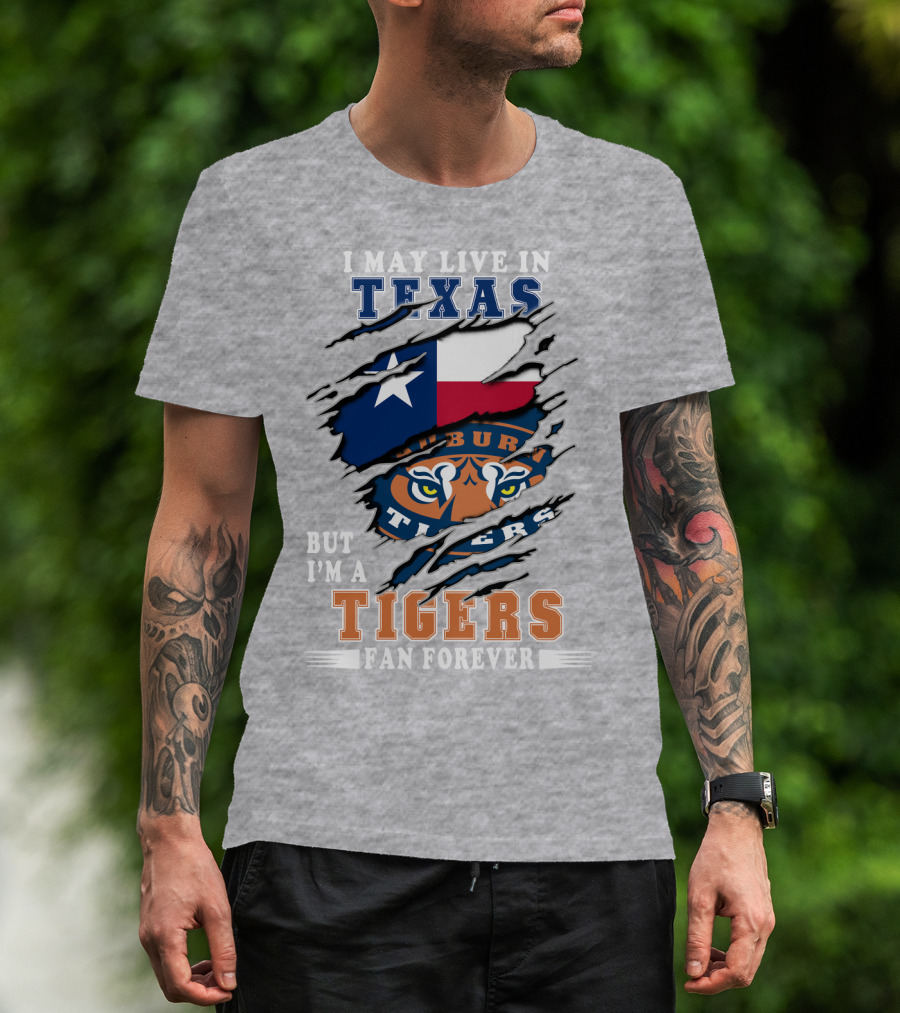 I May Live In Texas But I'm A Auburn Tigers Fan Forever T-Shirt